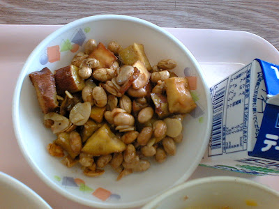 ミルクパン 牛乳 わかめうどん だいずとさつまいもの黒砂糖がらめ